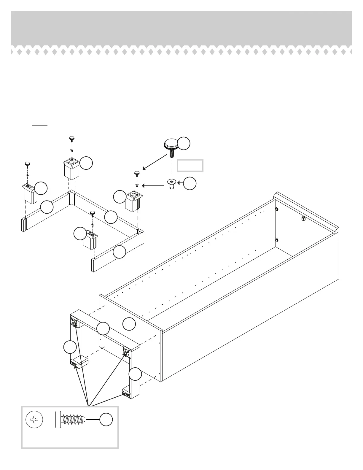 Fasten the SKIRTS (H and R) to the BOTTOM (D2). Use four BLACK 9/16" WAFER HEAD SCREWS (33S) through the