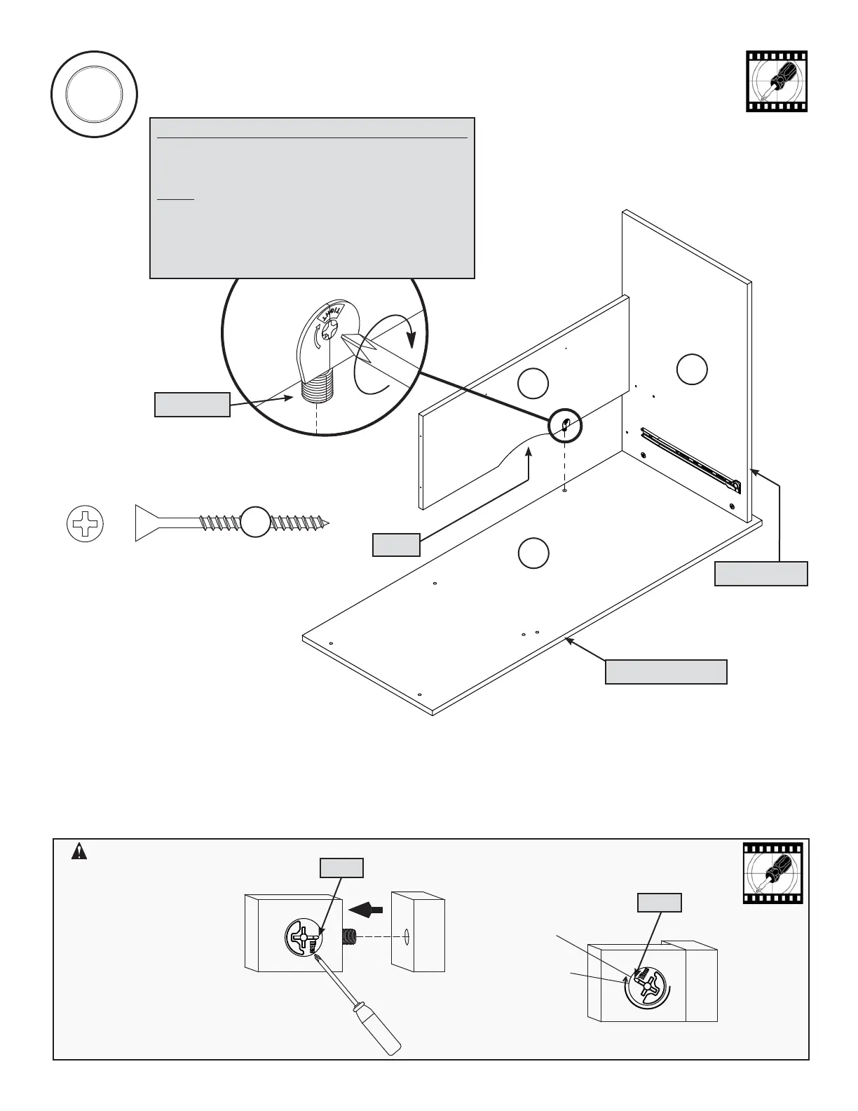Fasten the MODESTY PANEL (F) to the TOP (D). Tighten a TWIST-LOCK