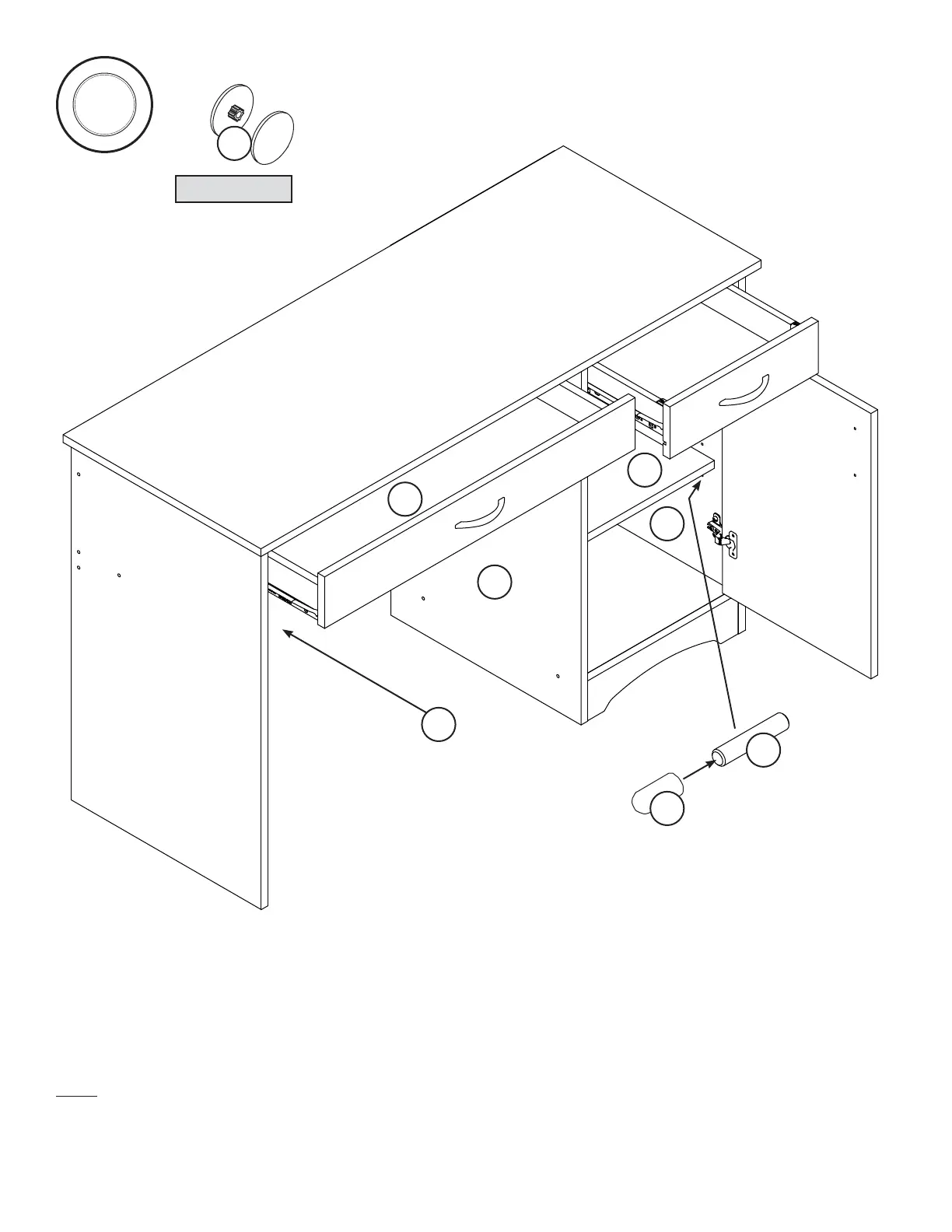 Lift the front of the drawer up and slide it into the unit. Repeat this step for the KEYBOARD SHELF (H).