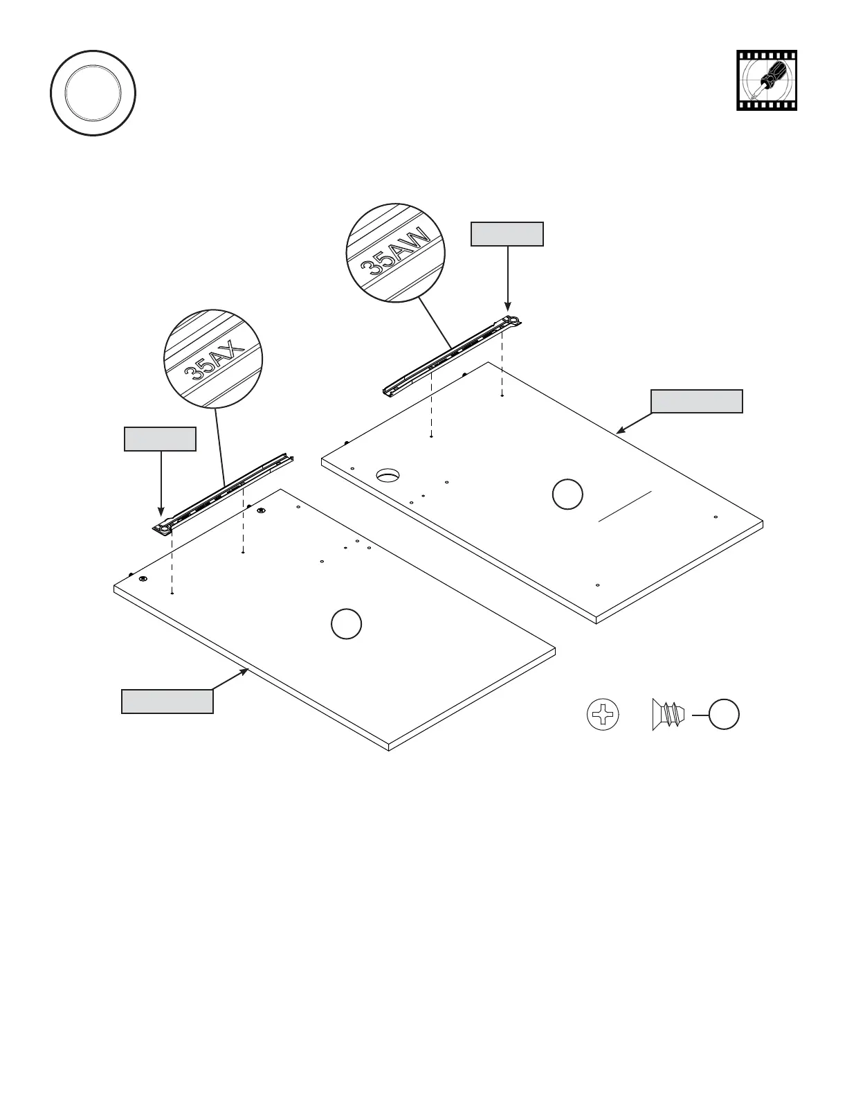 Fasten the CABINET LEFT (35AX) to the LEFT END (B) and the CABINET RIGHT (35AW) to the UPRIGHT (C). Use four GOLD 5/16"