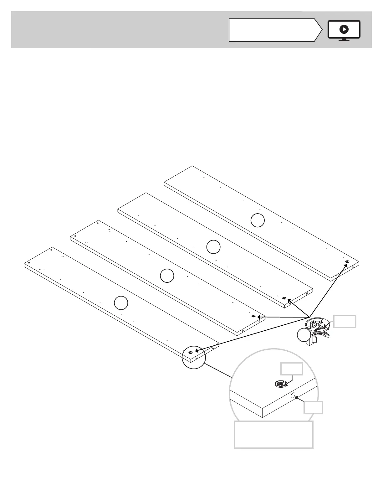 Push four HIDDEN CAMS (1F) into the RAILS (N2, O2, T, and U).