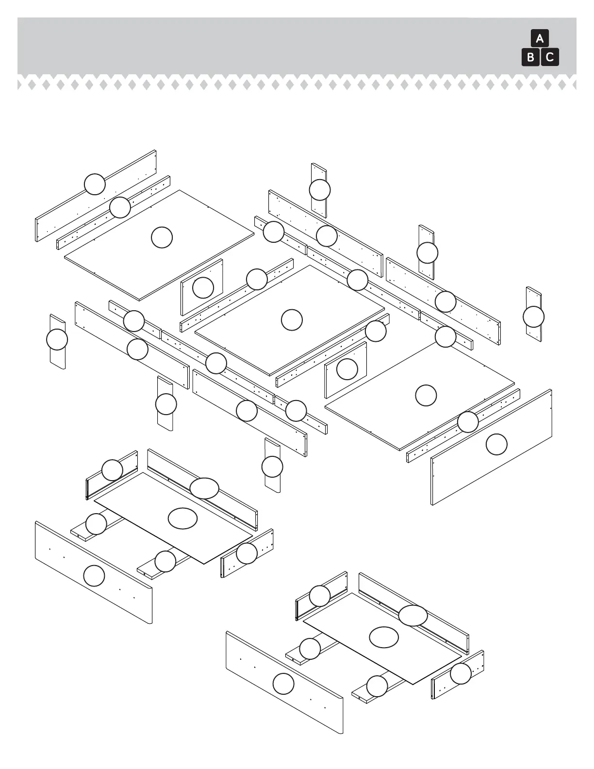å While not all parts are labeled, some of the parts will have a label or an inked letter on the ede