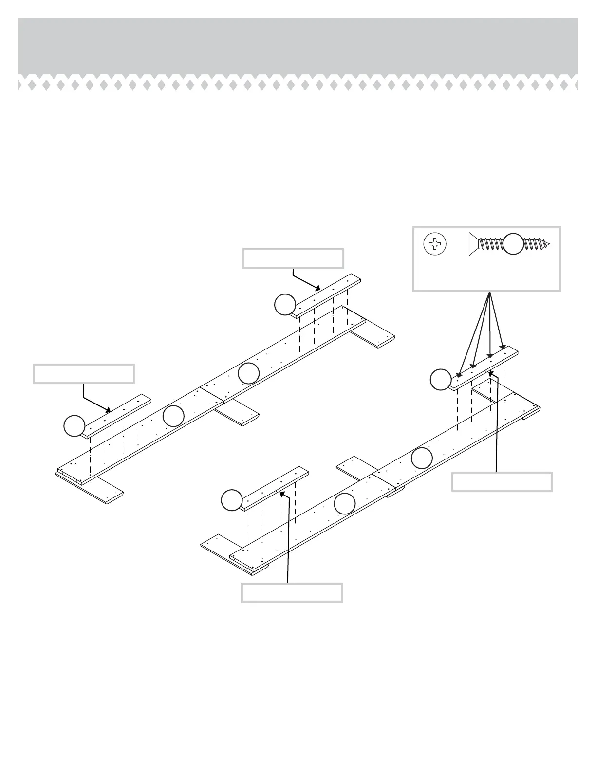 Fasten the SMALL SUPPORTS (L) to the RAILS (N). Use
