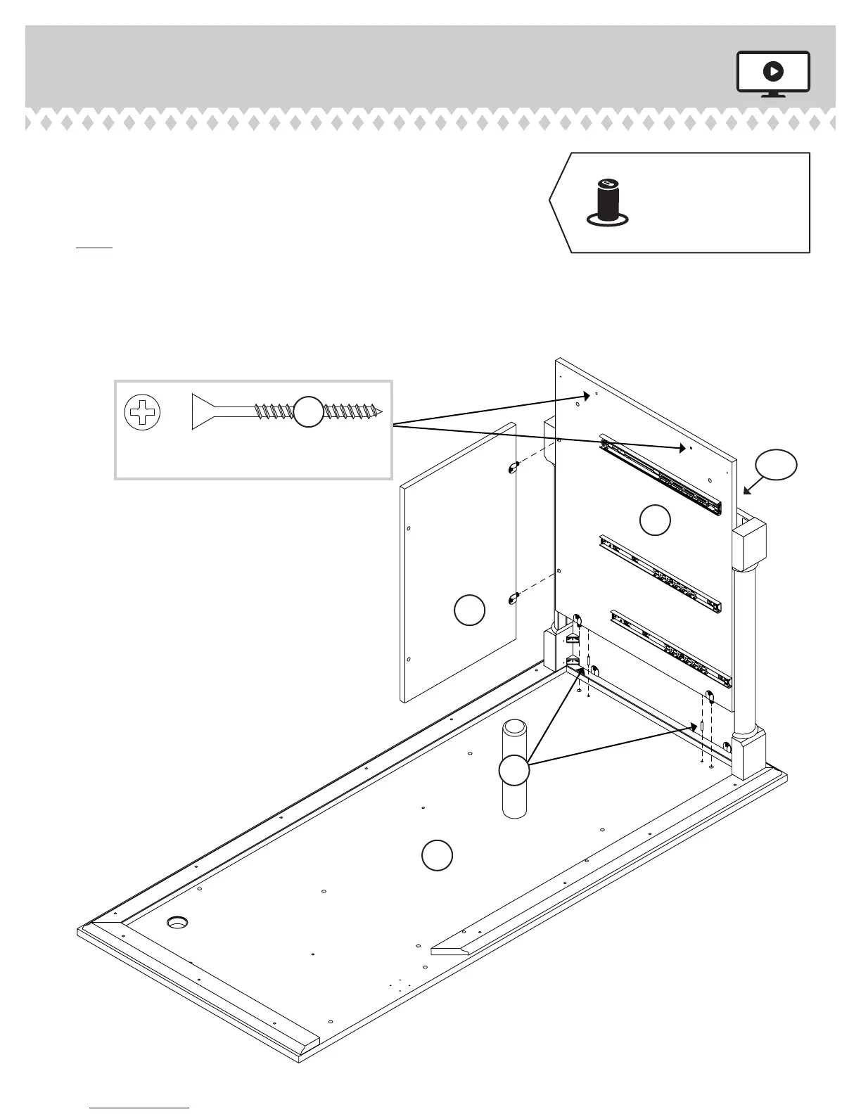 Use two BLACK 1-7/8" FLAT HEAD SCREWS (2S).