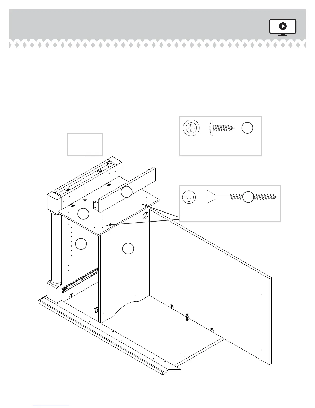 Use two BLACK 1-7/8" FLAT HEAD SCREWS (2S).