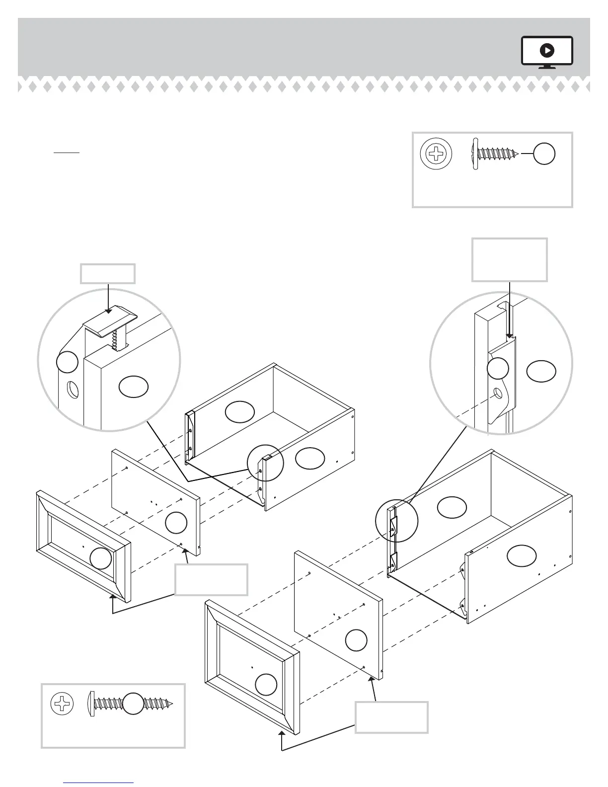 Fasten the DRAWER BOX FRONTS (S and Z) to the DRAWER FRONT