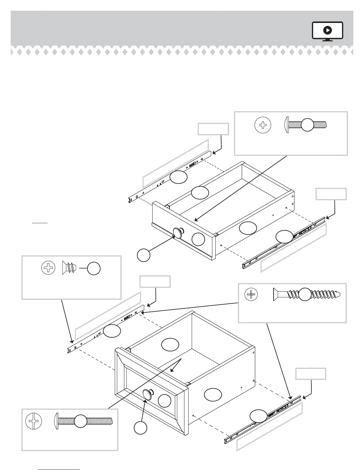 Fasten the NARROW EXTENSION SLIDES (QQQ) to the DRAWER