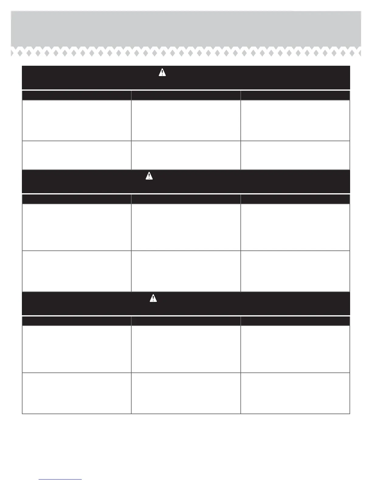 d’accident ou peut endommager le mobilier et les articles ménagers. Lire attentivement le tableau suivant.
