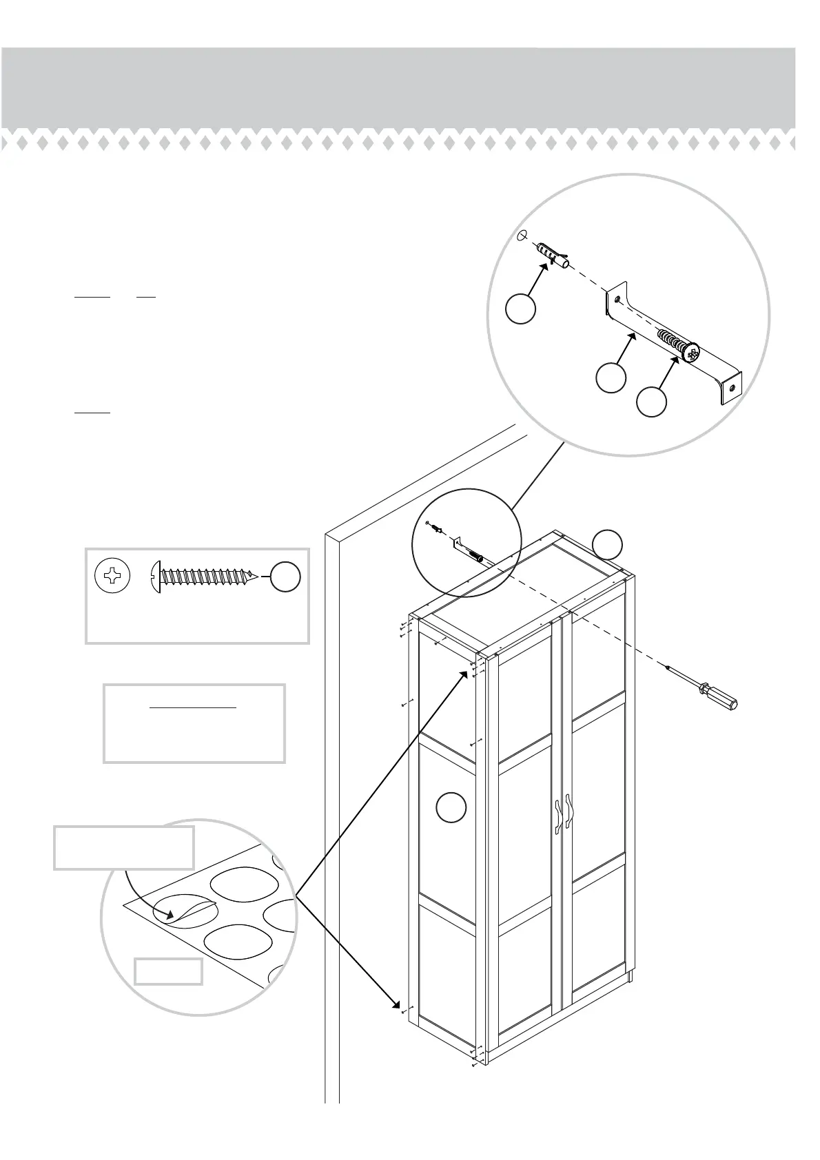 Fasten the SAFETY STRAP (6) to the wall using a 1" PAN HEAD