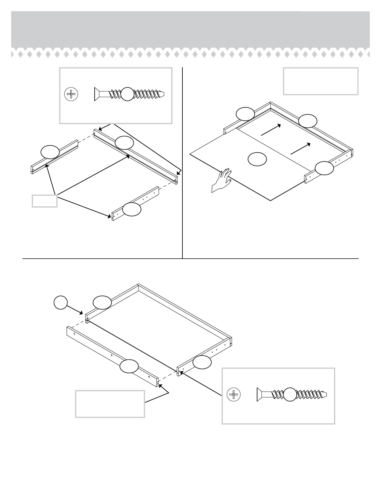 Fasten the PENCIL DRAWER BOX FRONT (D506) to the