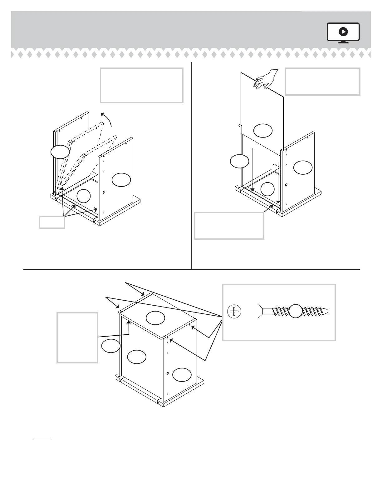 NOTE: Be sure the LARGE DRAWER BOTTOM (D707) inserts into the roove