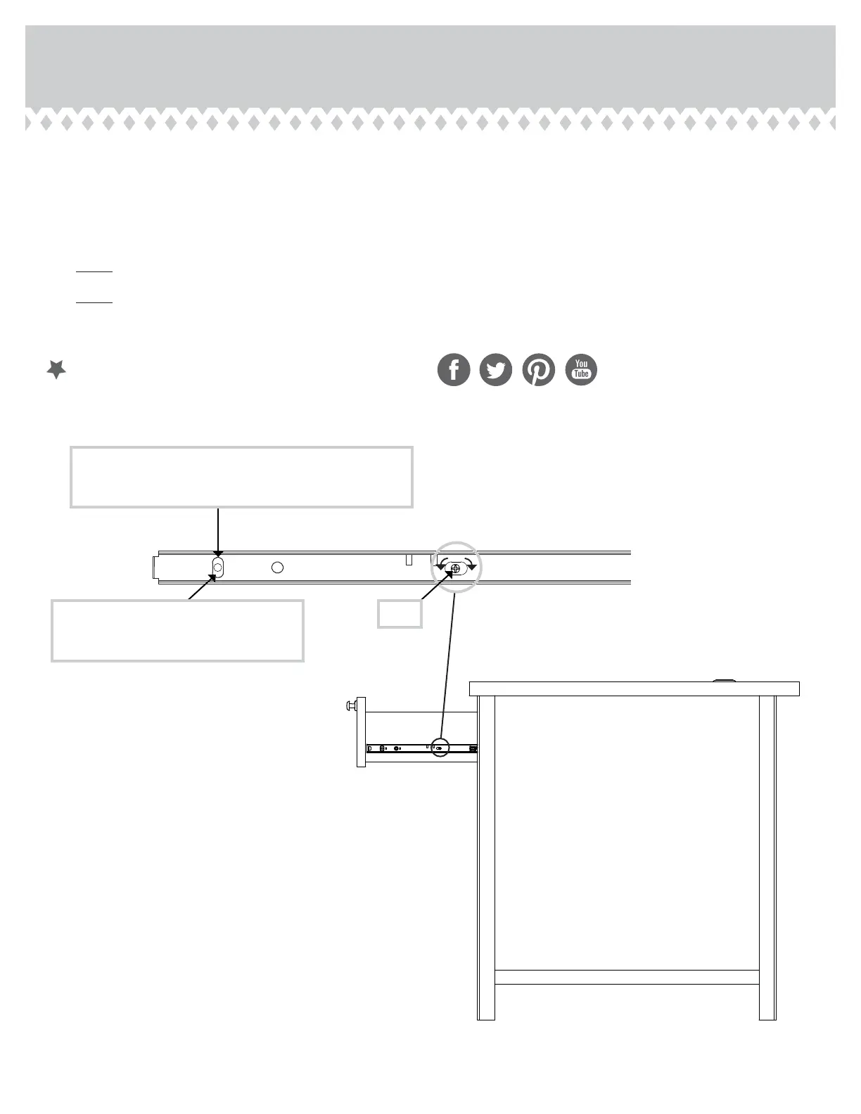 adjustin the drawers this way, it will help the DRAWER FRONTS line up better when closed. Tihten the SCREW