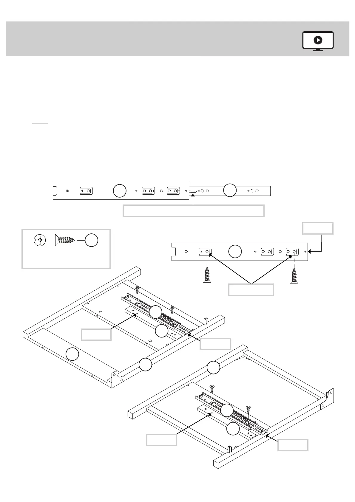 NOTE: For each EXTENSION RAIL, turn a SCREW into the back hole. Then,