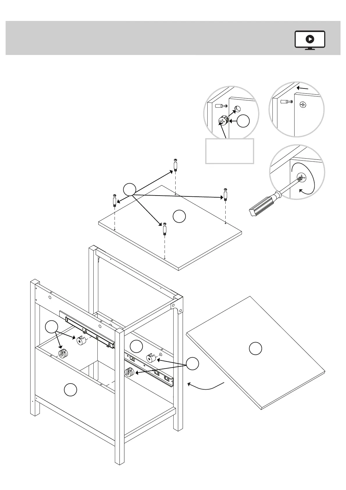 Turn four CAM SCREWS (7) into the SHELF (K).