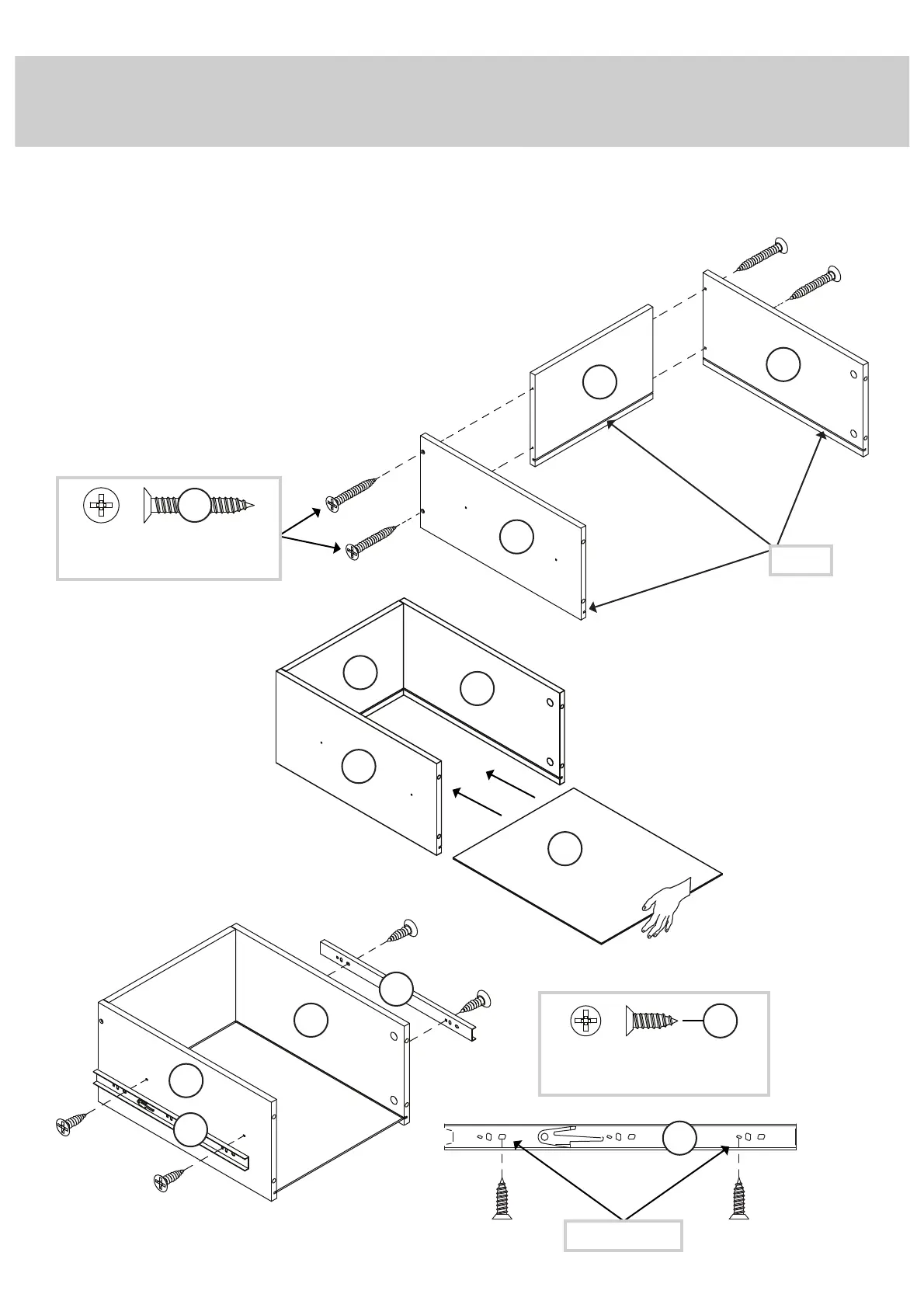LARGE DRAWER BACK (S). Use four BLACK 1" FLAT