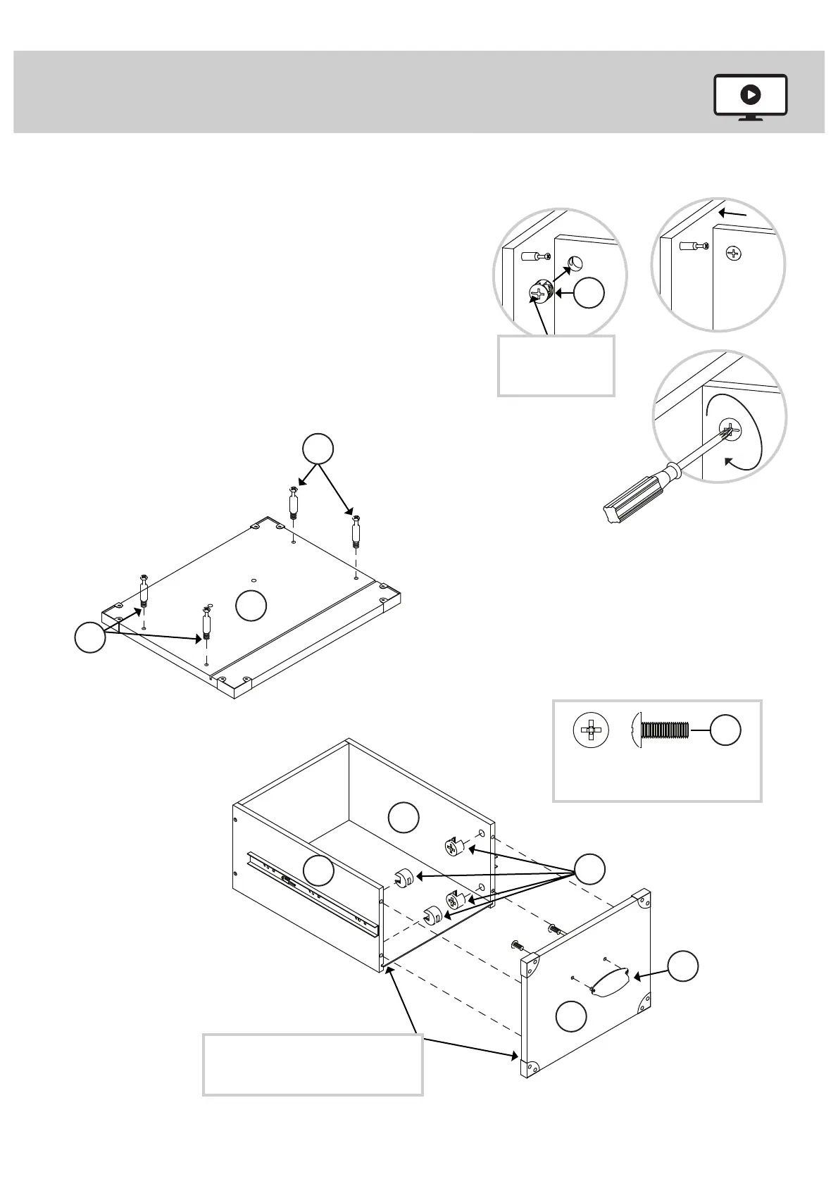 Turn four CAM SCREWS (7) into the LARGE