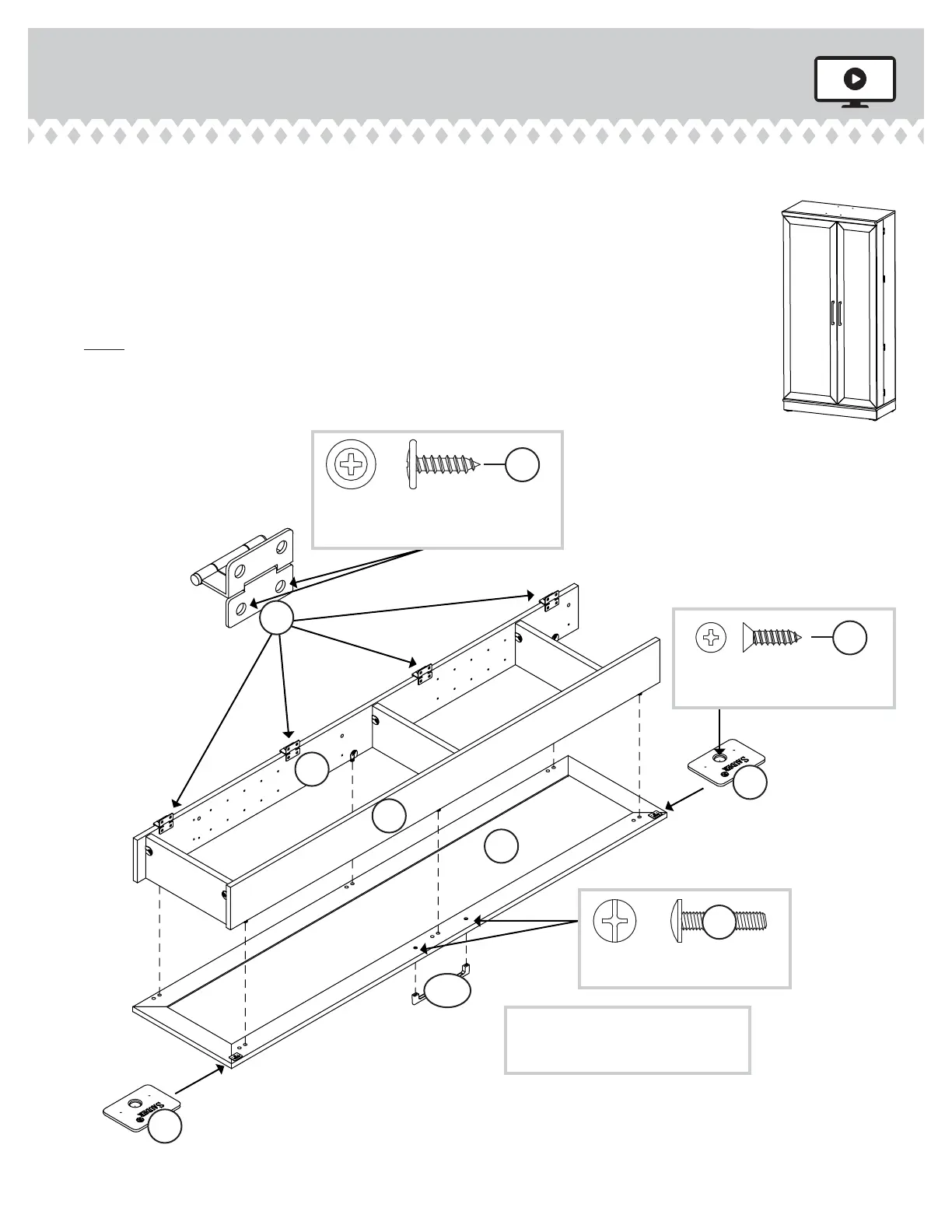 Fasten the HINGES (1H) to the DOOR END (C). Use eight