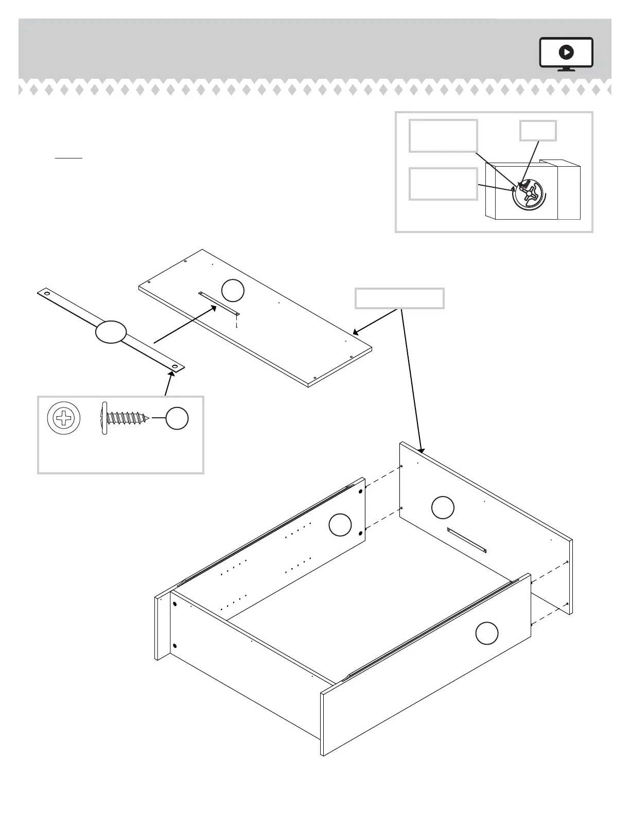Fasten the TOP (E2) to the ENDS (A and B). Tighten four