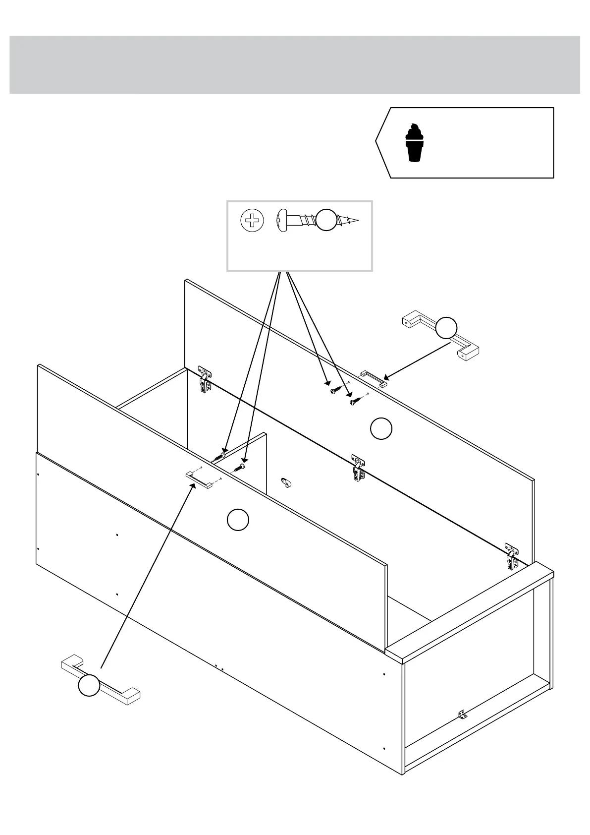 Fasten the PULLS (5) to the DOORS (C). Use four 15/16"