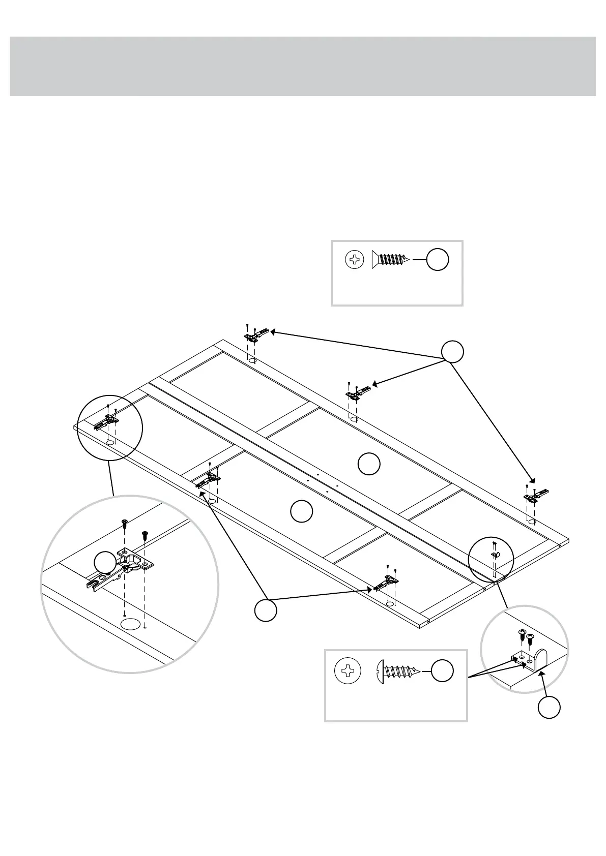 Fasten the HINGES (2) to the DOORS (H and N). Use