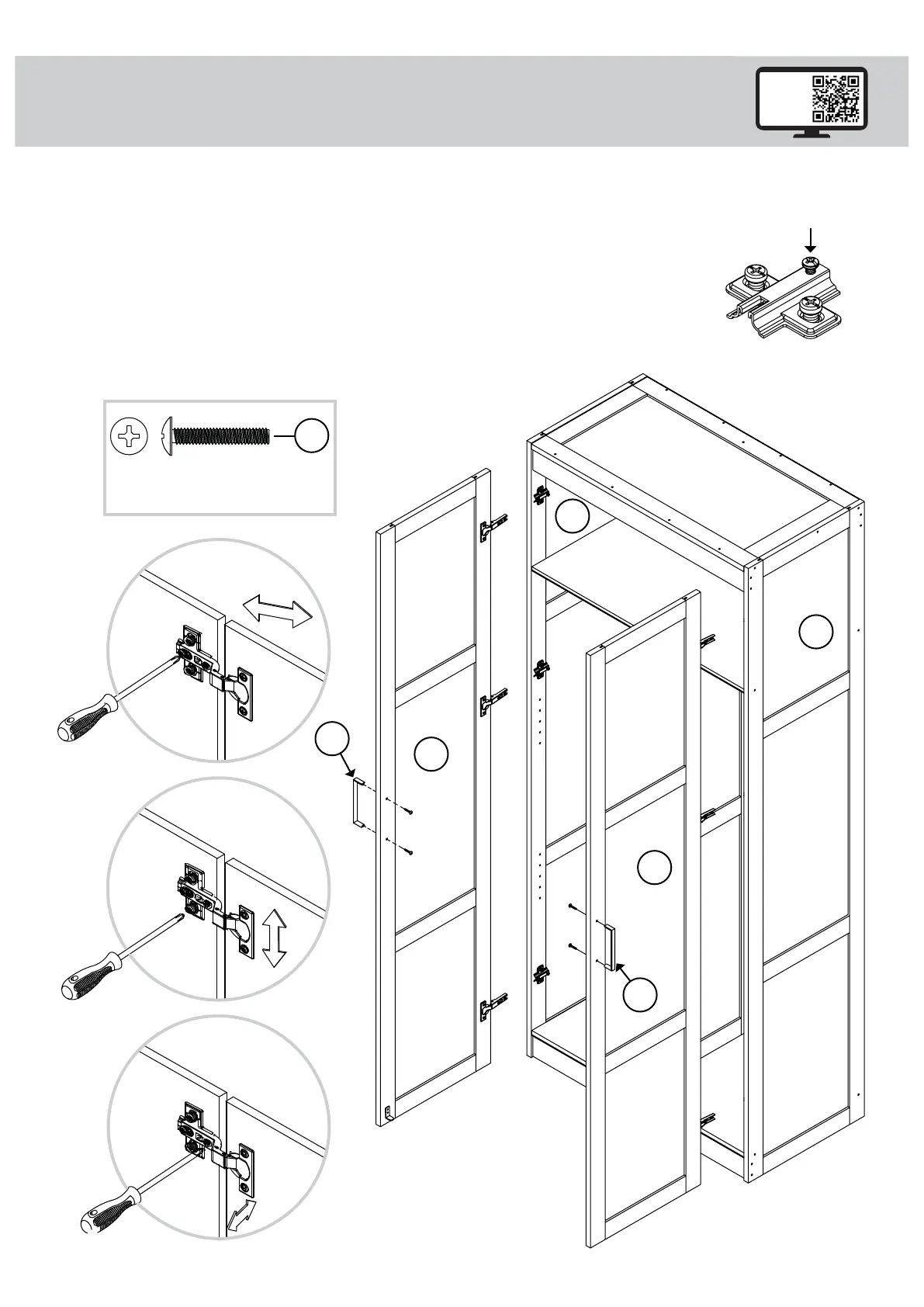 on the DOORS onto the HINGE BRACKETS on the ENDS. Secure the