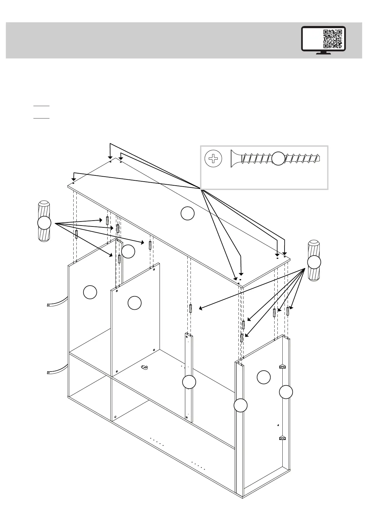 Insert ten WOOD DOWELS (1) into the LEFT END (A).