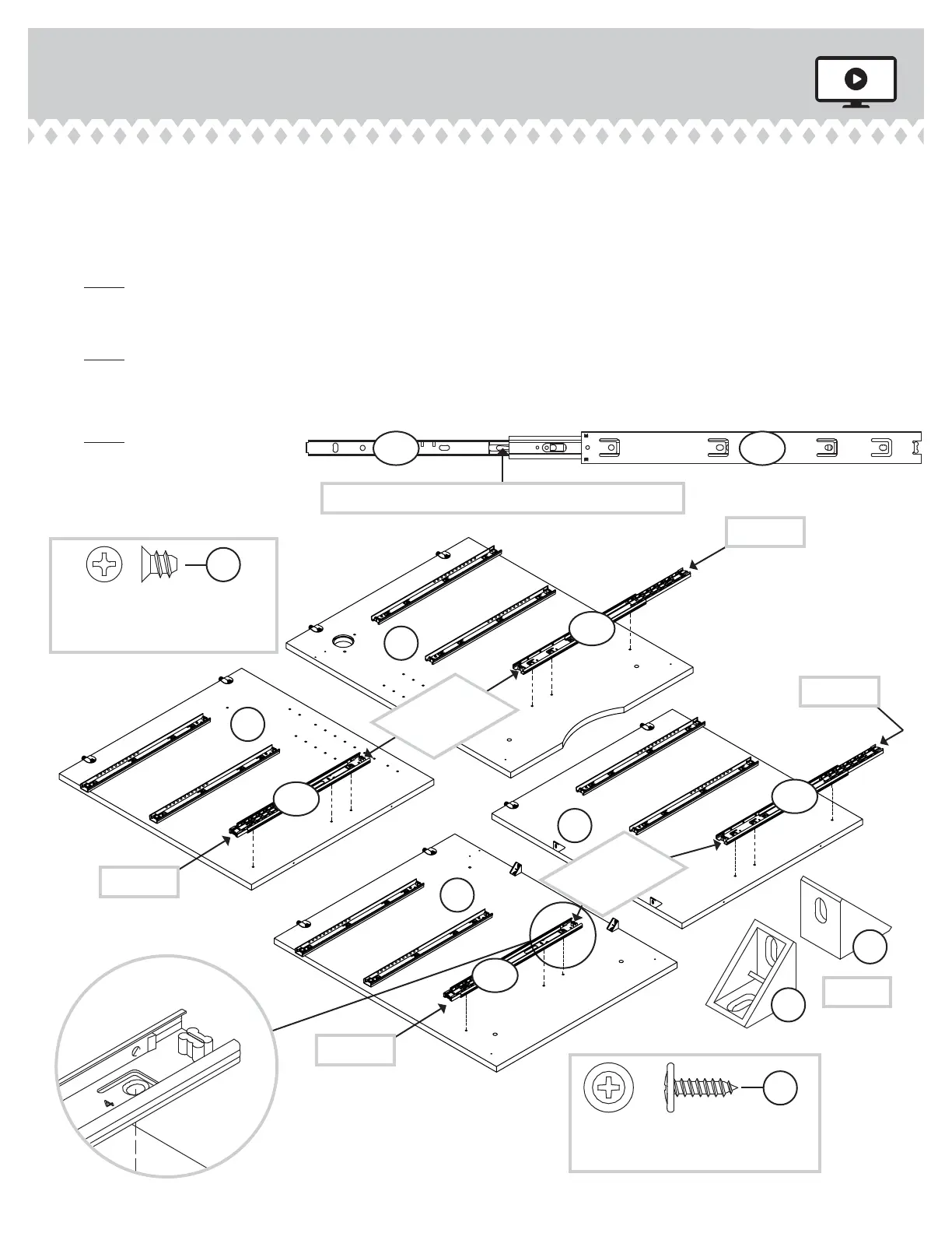 NOTE: For each EXTENSION RAIL, turn a SCREW into the hole shown in the enlarged diagram. Then, slide the inner