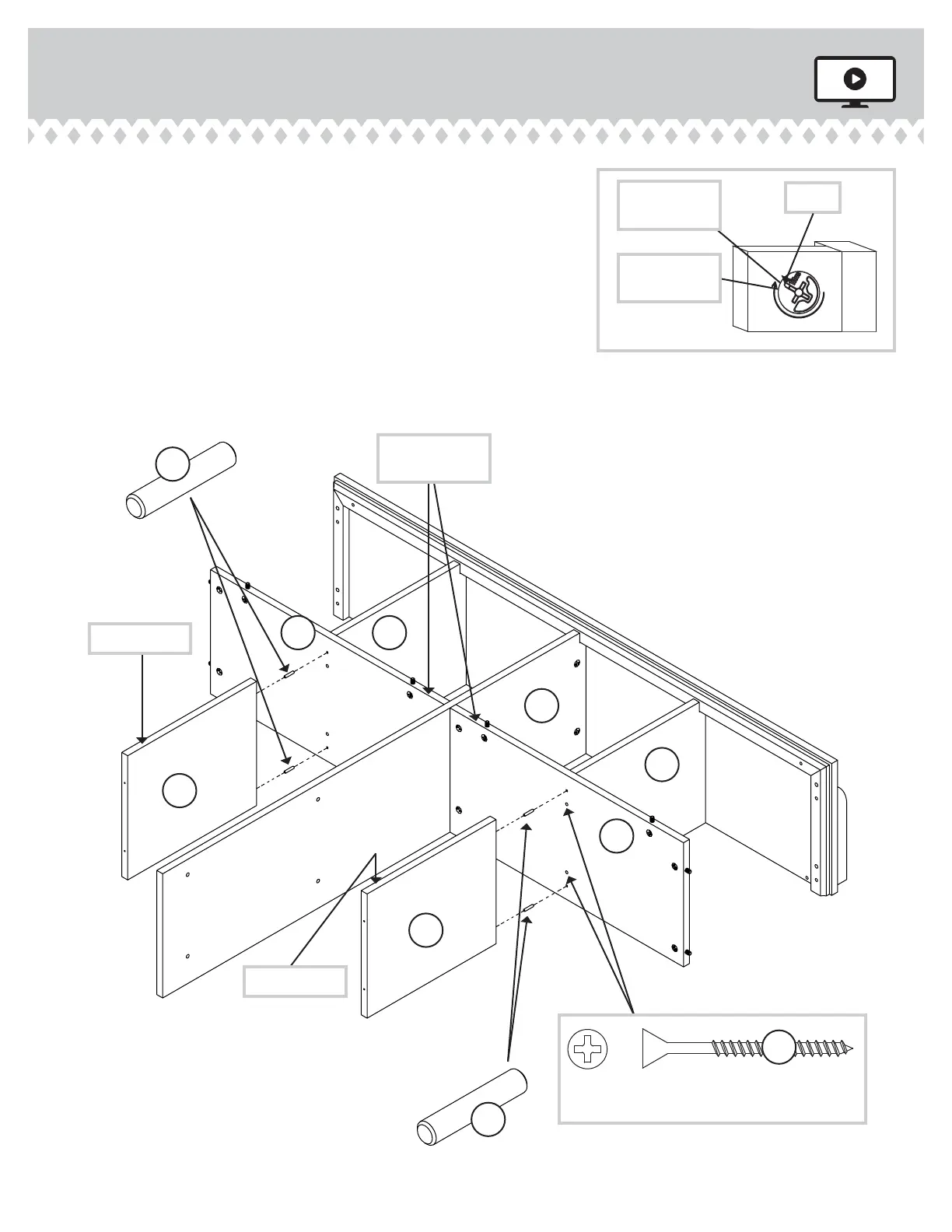 Fasten the SHELVES (H) to the UPPER UPRIGHTS (D). Use