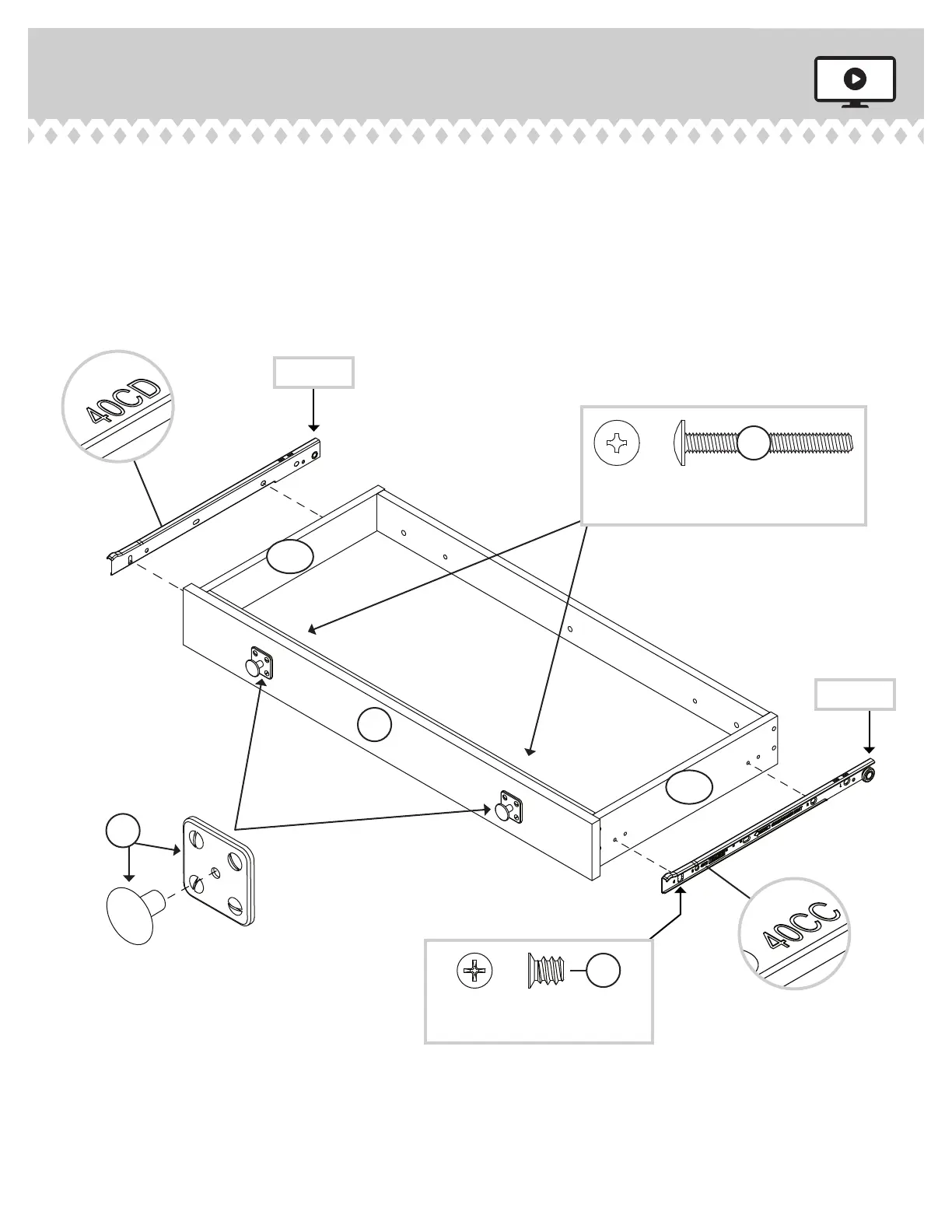 Fasten a DRAWER RIGHT (40CC) and a DRAWER LEFT (40CD)