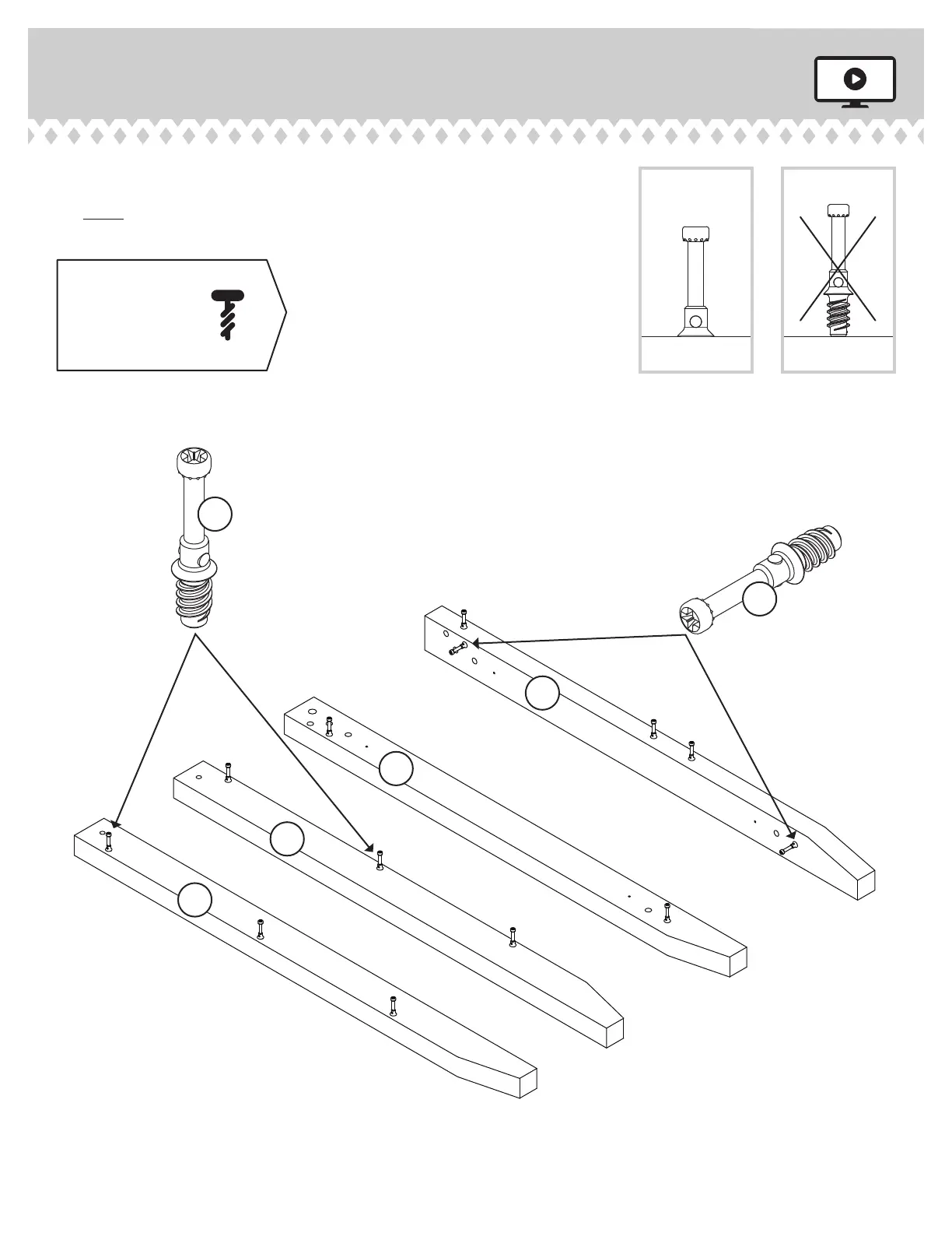 Turn thirteen CAM SCREWS (8F) into the LEGS (U, V, X, and Y).