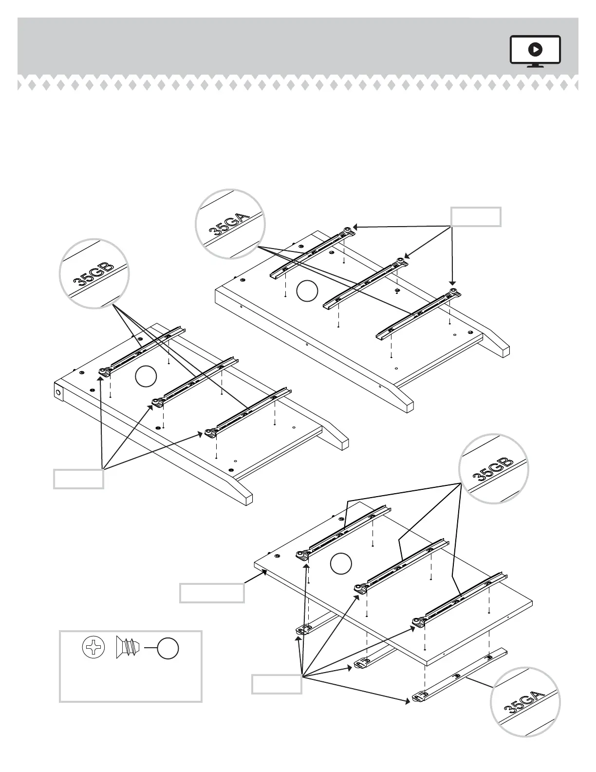 Fasten three CABINET RIGHTS (35GA) and three CABINET LEFTS (35GB)