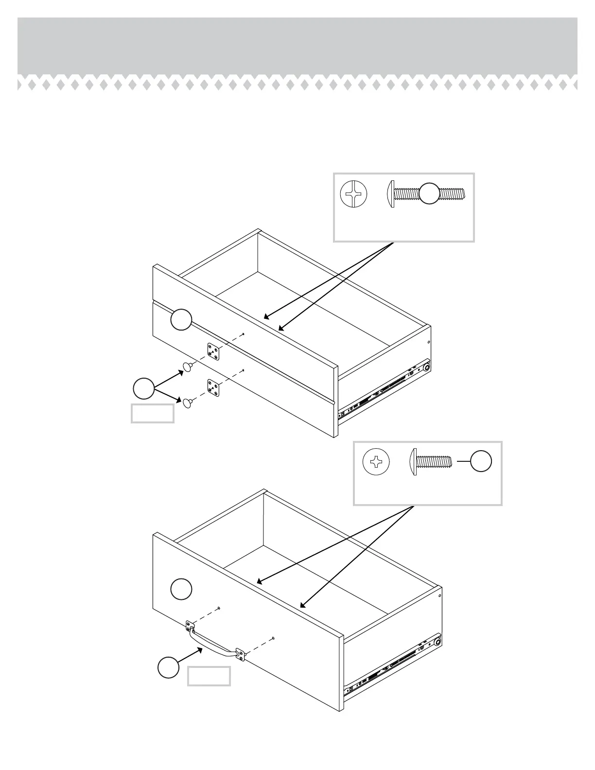 Fasten the KNOBS (52K) to the TOP DRAWER FRONTS (K and L). Use