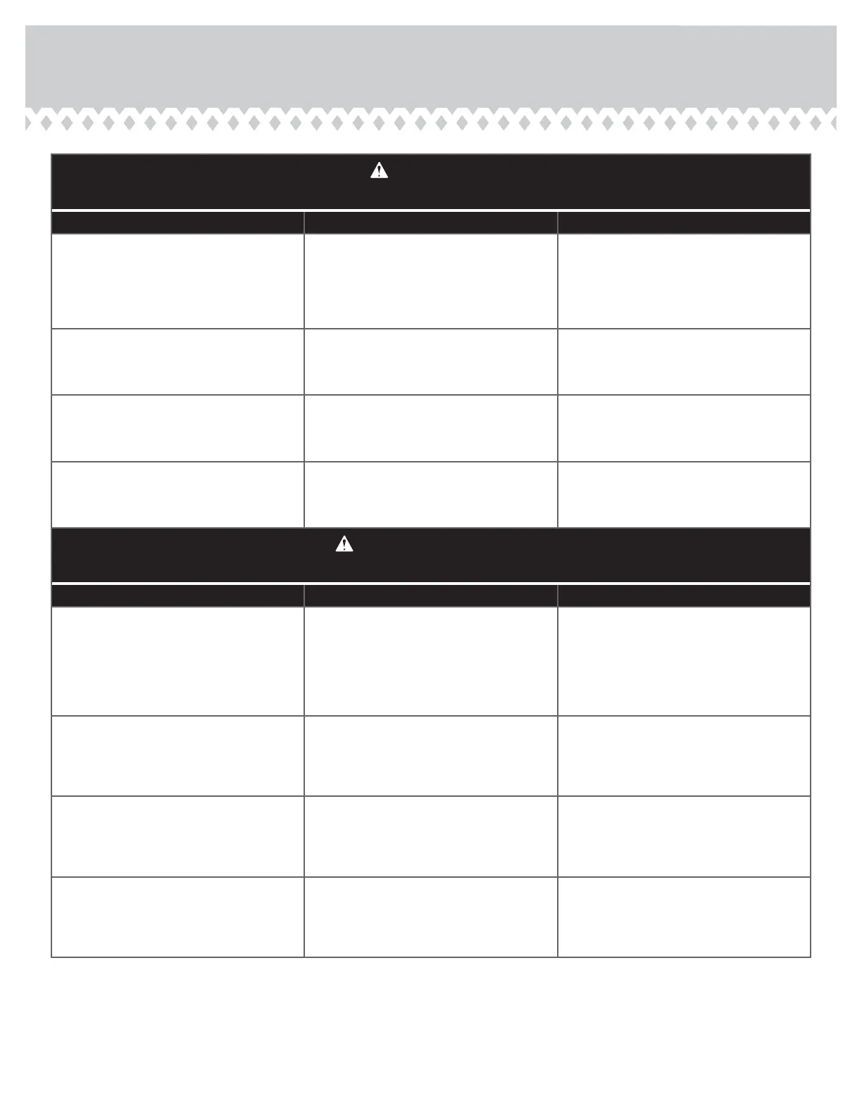 d’accident ou peut endommaer le mobilier et les articles ménaers. Lire attentivement le tableau suivant.