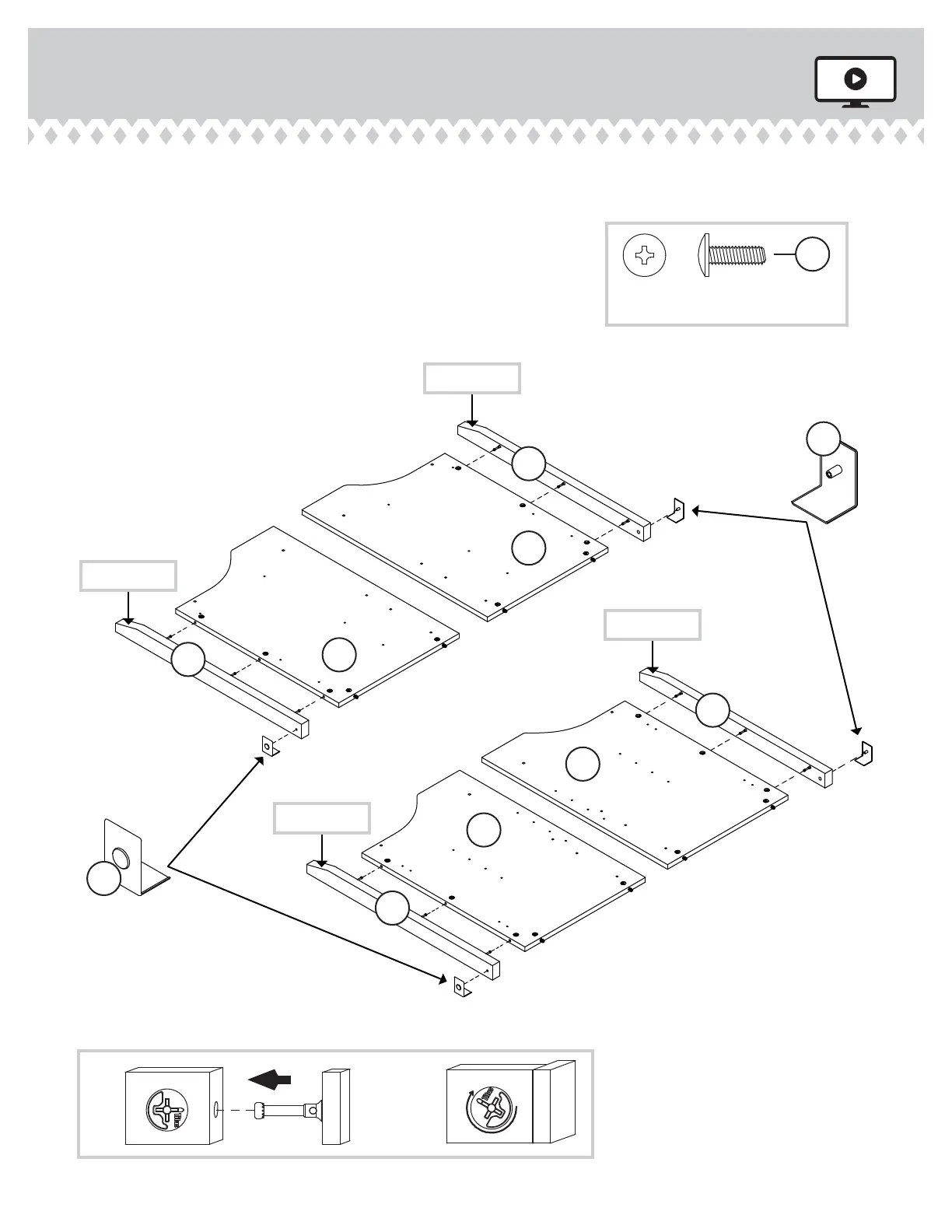 Fasten the CORNER ACCENTS (8E) to the LEGS (Q