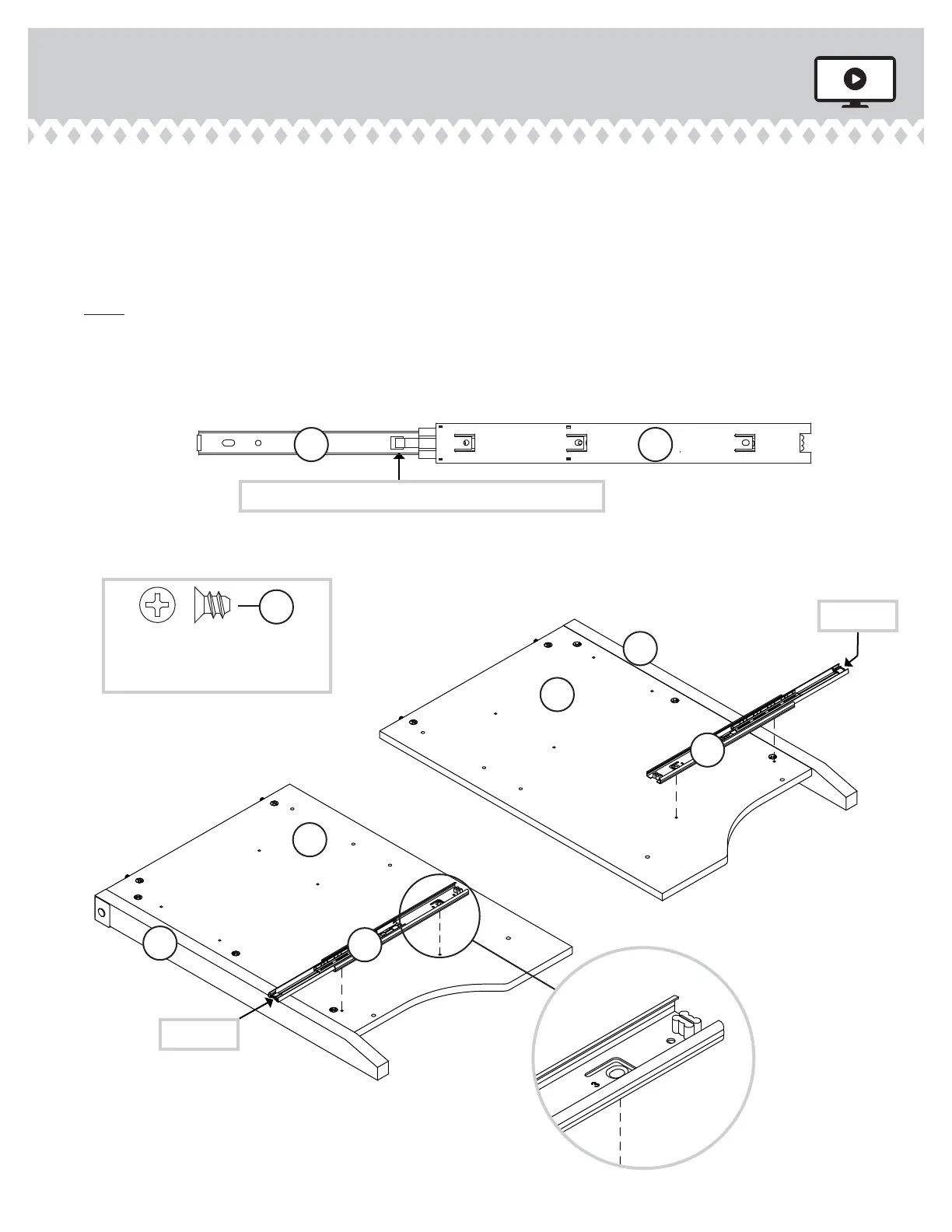 NOTE: For each EXTENSION RAIL, turn a SCREW into the hole