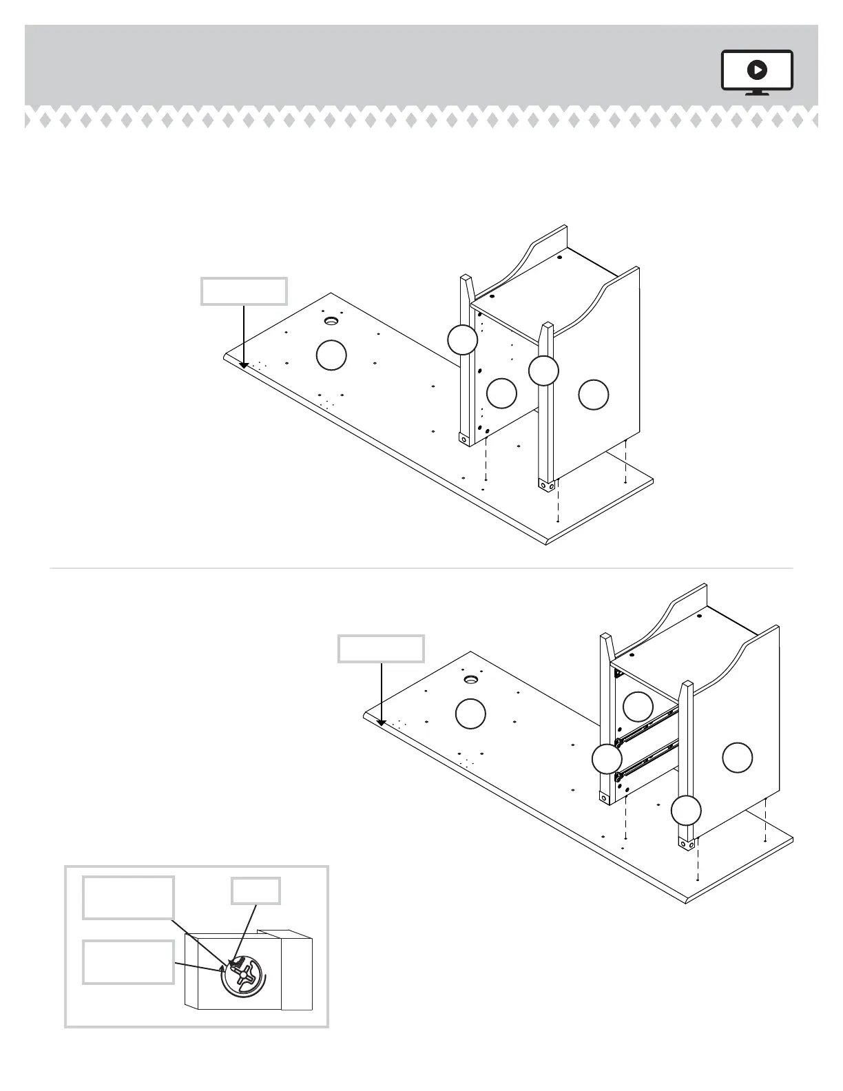 For the DRAWERS on the Left, fasten the DRAWER ENDS (C
