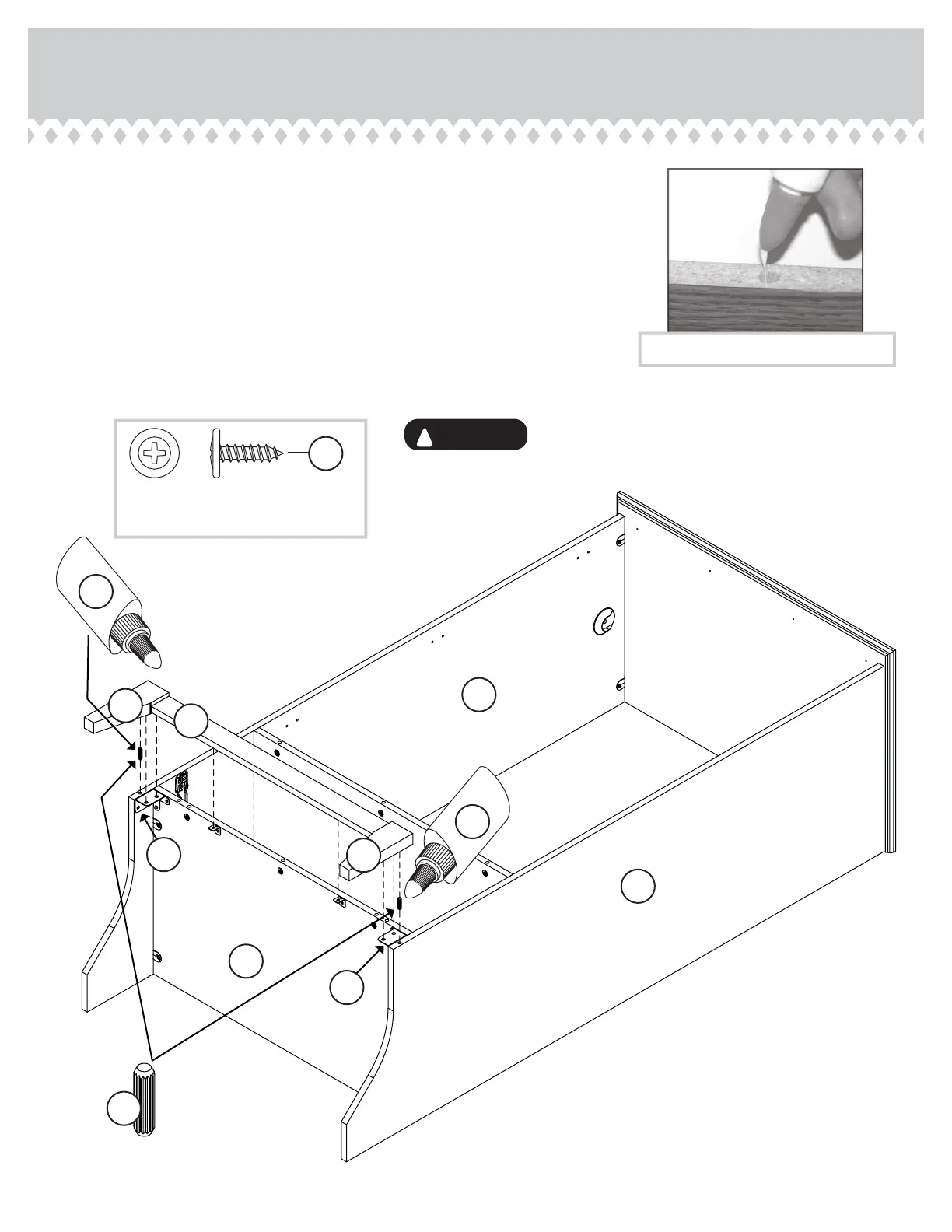Fasten the SKIRT (G) to the BOTTOM (D). Use two BLACK 9/16" LARGE HEAD
