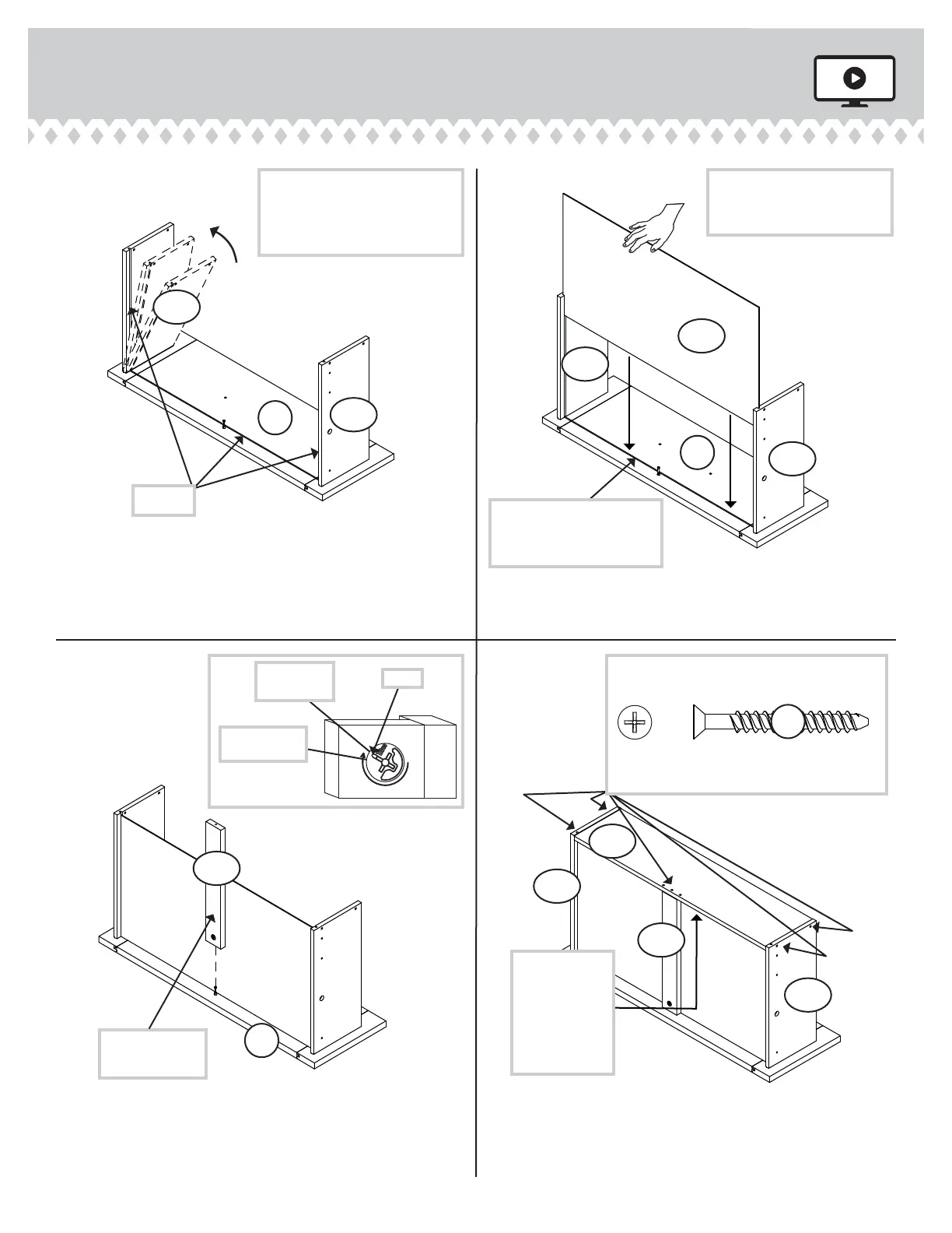 Start each screw a few turns before