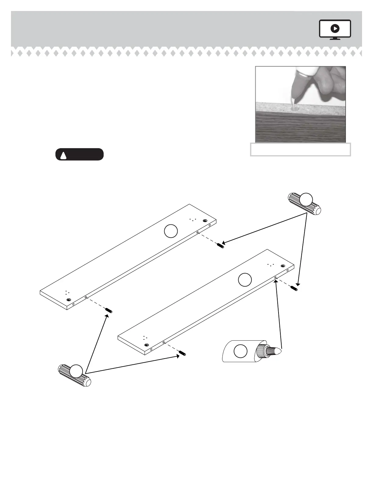Fill four holes in the TOP/BOTTOM RAILS (B) 1/4 to 1/2 full