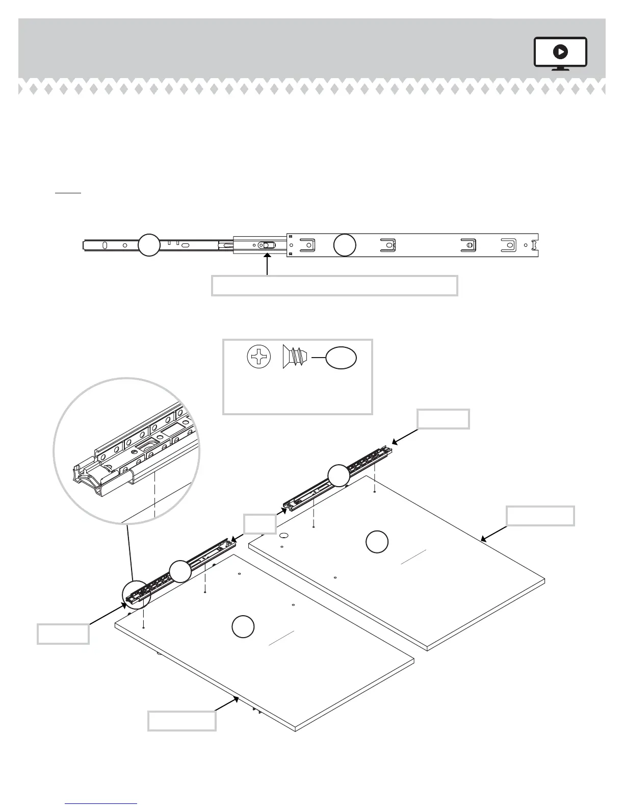 NOTE: For each EXTENSION RAIL, turn a SCREW into the hole shown in the enlarged diagram. Then, slide the inner cartridge