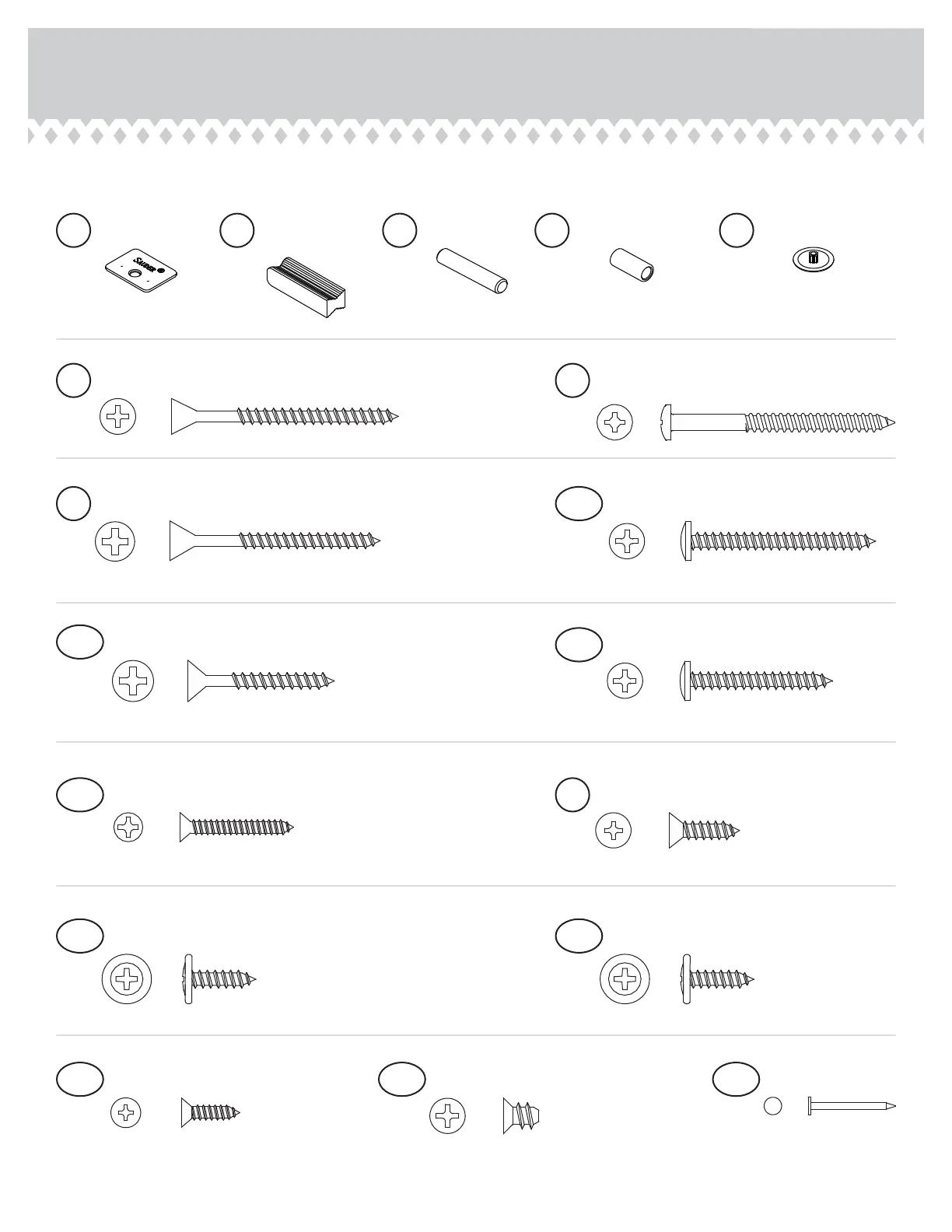 å Screws are shown actual size. You may receive extra hardware with your unit.