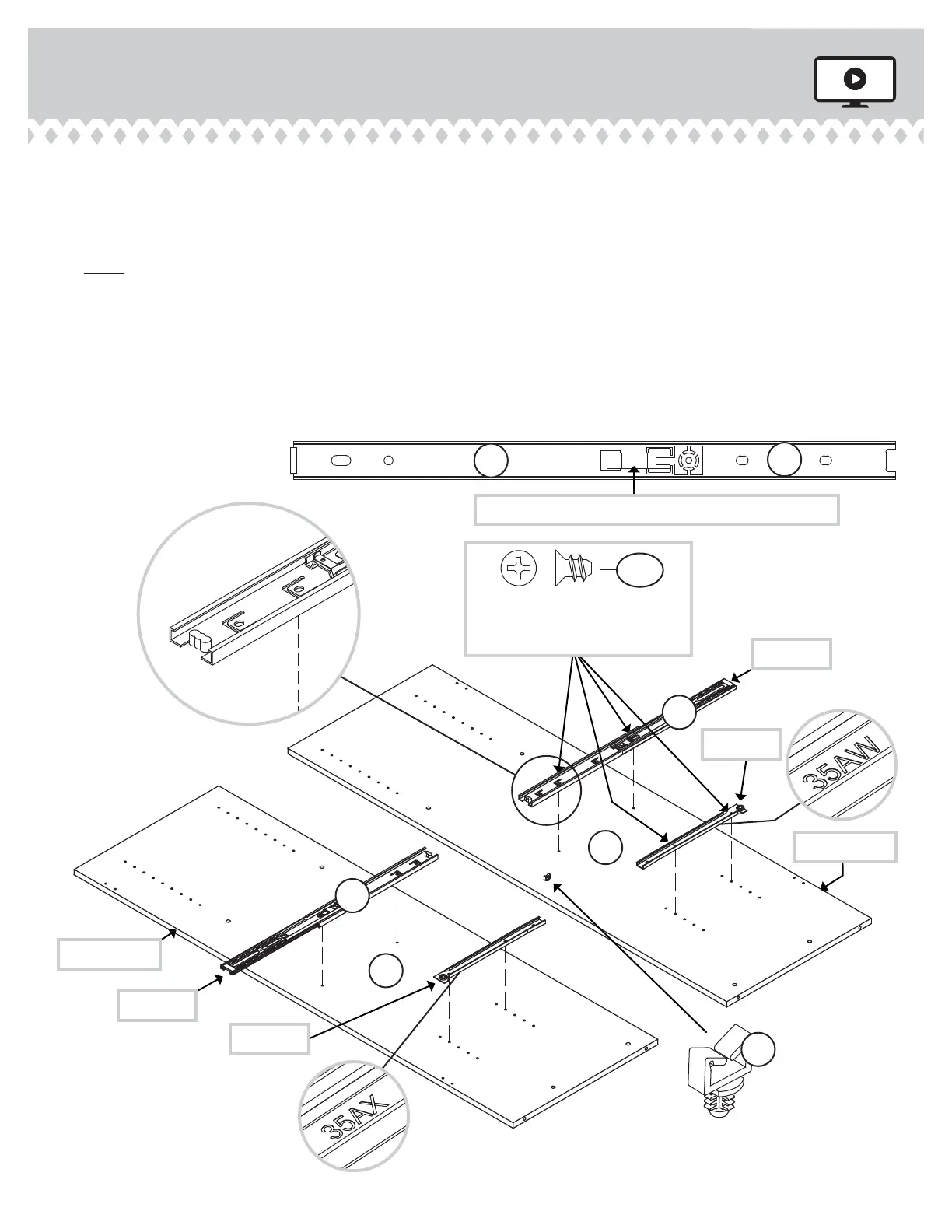 NOTE: For each EXTENSION RAIL, turn a SCREW into the hole shown in the enlarged diagram. Then, slide the inner cartridge