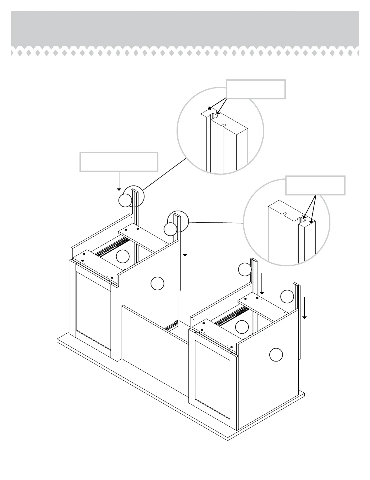 Slide the END MOLDINGS* (Z) onto the notched edges of