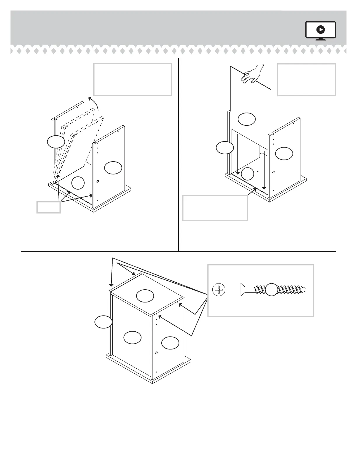 Fasten the LARGE DRAWER BACK (D78) to the LARGE DRAWER SIDES (D87 and D88). Use four BLACK 1-9/16" FLAT