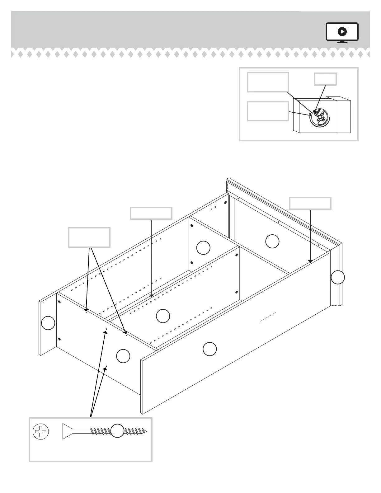 Fasten the RIGHT END (A) to the SHELF (E), BOTTOM (F),