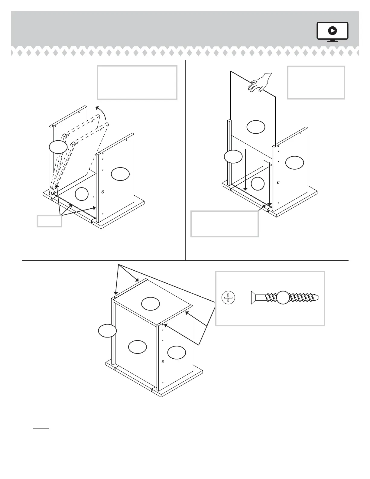 Start each screw a few turns before
