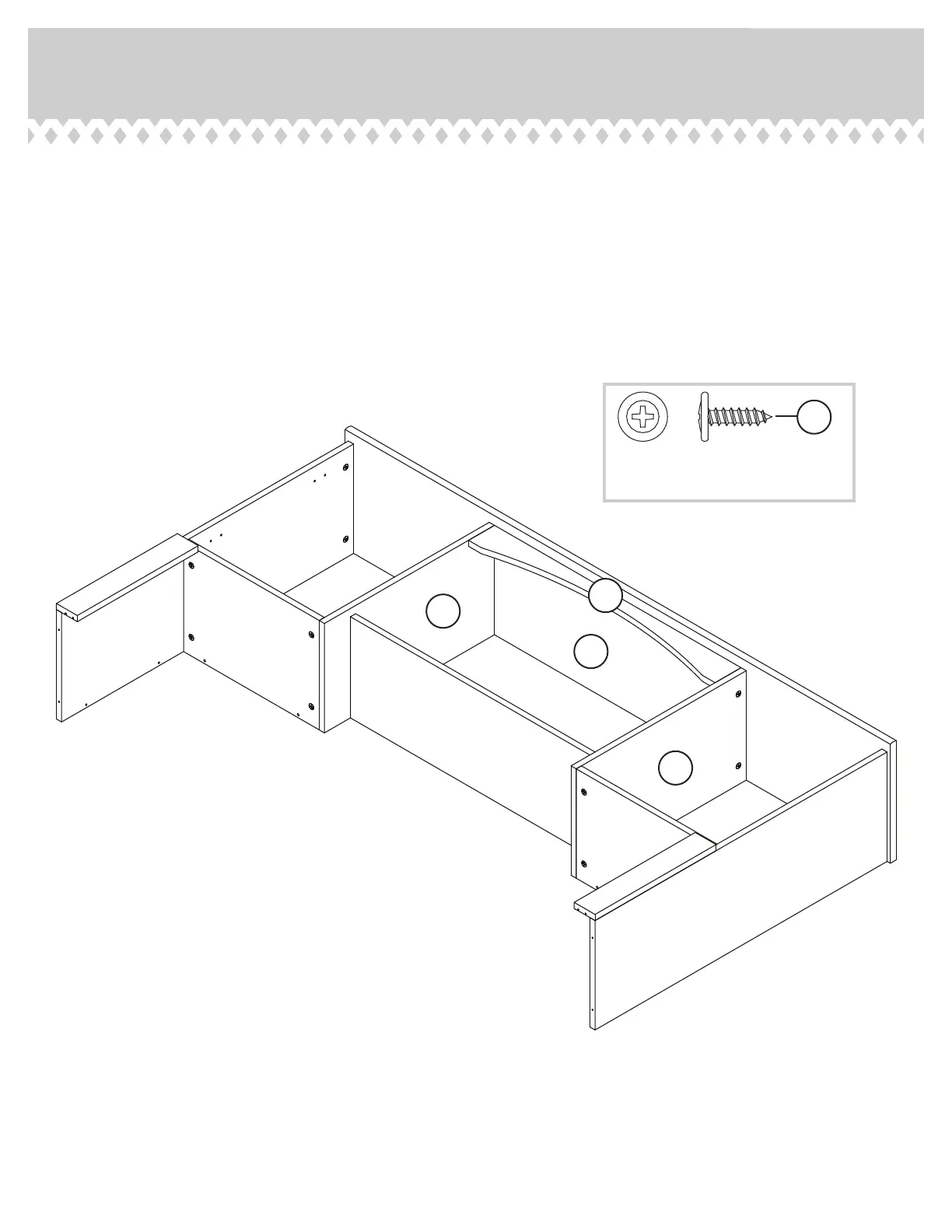 Fasten the VALANCE (L) to the UPRIGHTS (C and D) and