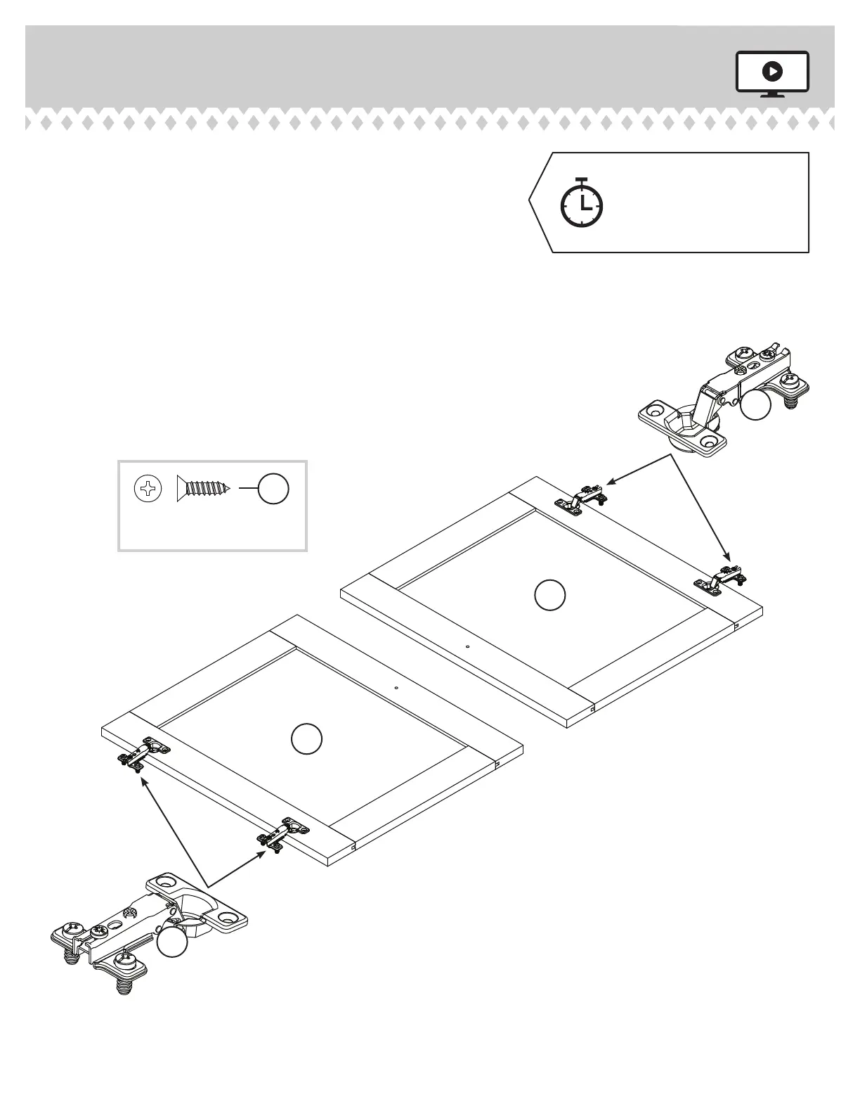 Fasten two HINGES (13H) to each DOOR (K). Use eight