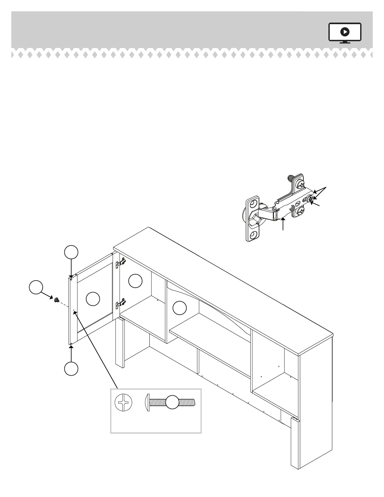 the screws in the HINGES. You should start each SCREW a few turns before