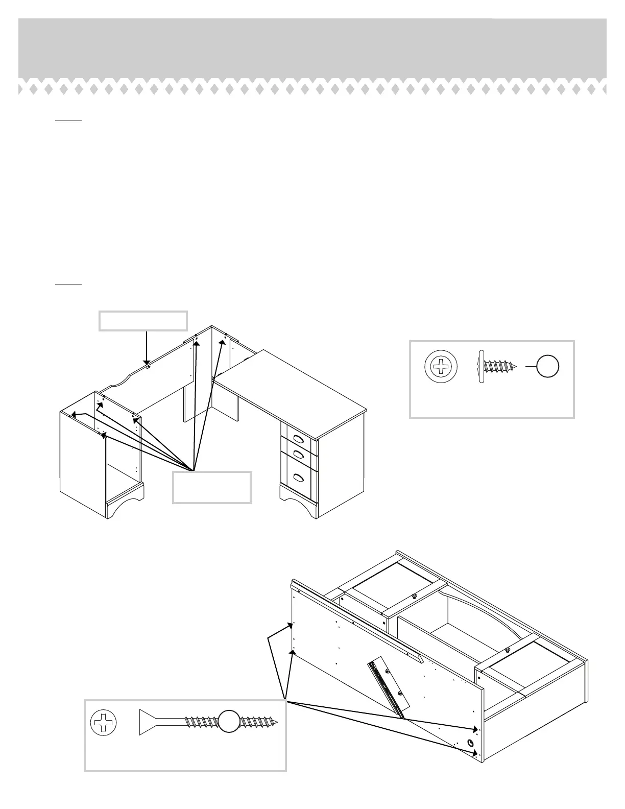 NOTE: There are no pre-drilled holes in the back edge of the DESK TOP. Use a little extra force to start the screws.